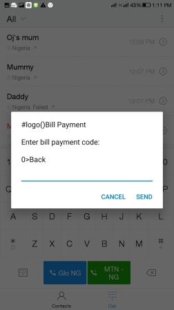 Step 3: You will be asked to enter bill payment code. This is a code generated by you and given to the customer to use to make his payment.
