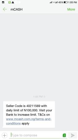 You will then receive an sms welcoming you to the service and providing your seller code.
